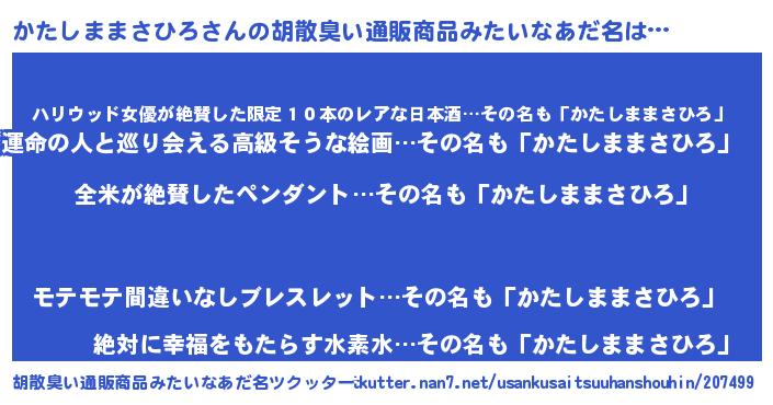 | 肩書あだ名 | 『かたしままさひろプロデューサー』 |