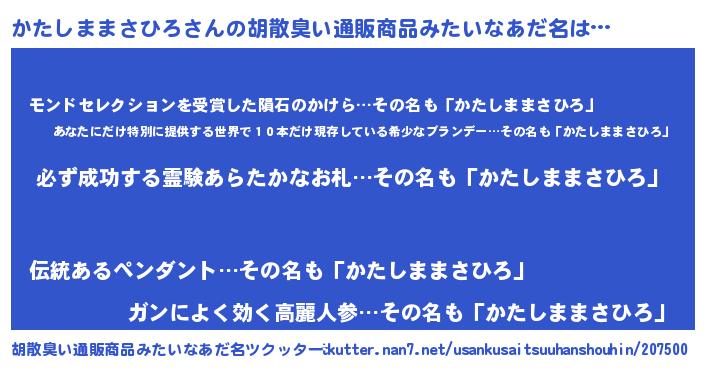 | ヒーロー風カッコイイあだ名 | 『スーパーカタシママサヒロ』 |