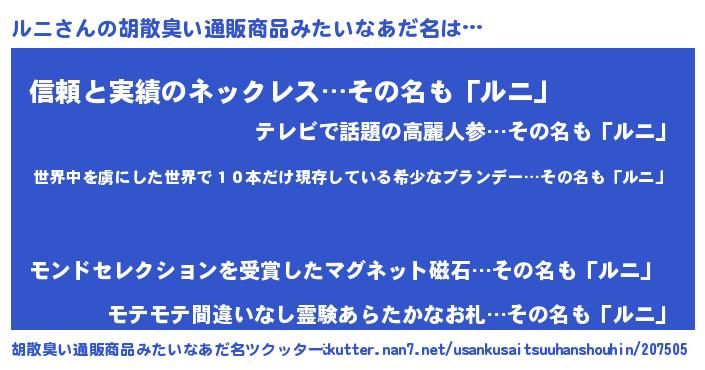 | ピコ太郎風あだ名 | 『ルニ六郎』『ルコ四郎』『ルル太郎』 |