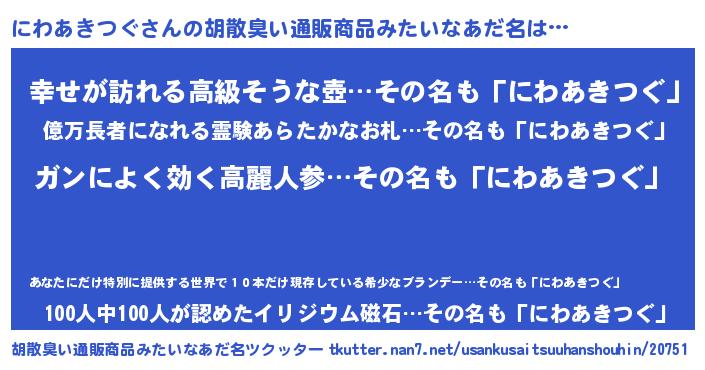 | 意味不明あだ名 | 『自称にわあきつぐ』 |