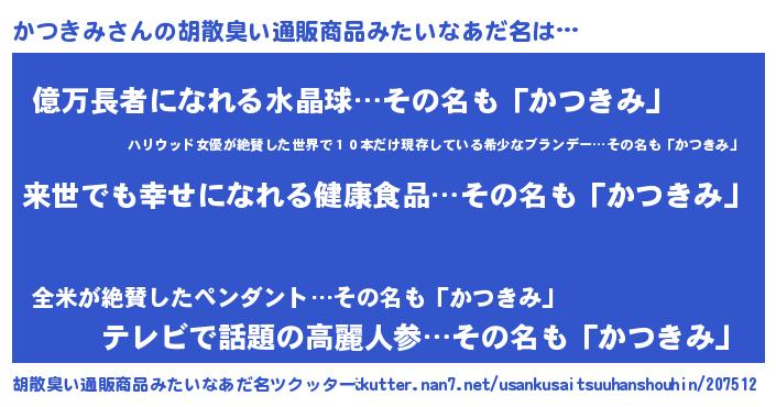 | 男性向けラノベタイトル風あだ名 | 『かつきみに滅ぼされるだけの簡単なお仕事です』 |