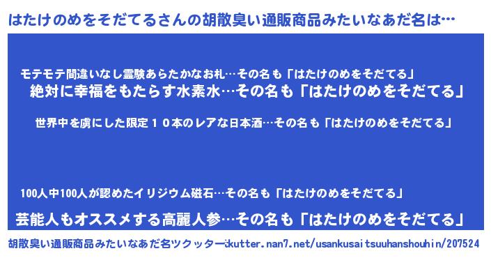 | 意味不明あだ名 | 『住所不定無職はたけのめをそだてる(62歳)』 |