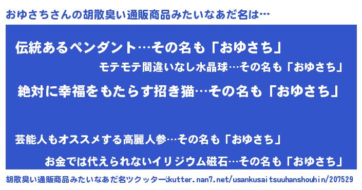 | 意味不明あだ名 | 『永久保存おゆさち』『ペロリンおゆさち』 |