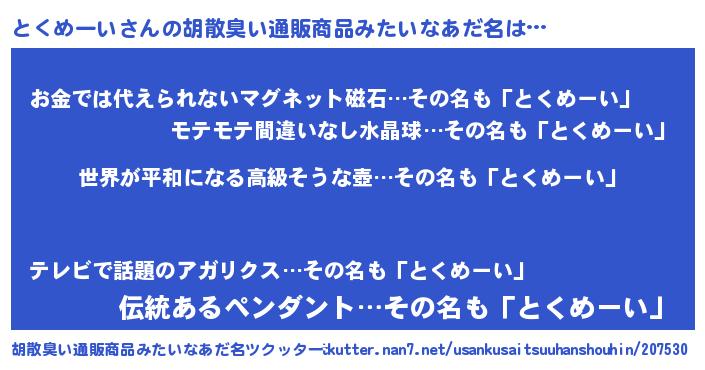 | 肩書あだ名 | 『とくめーい大統領』『とくめーい船長』 |