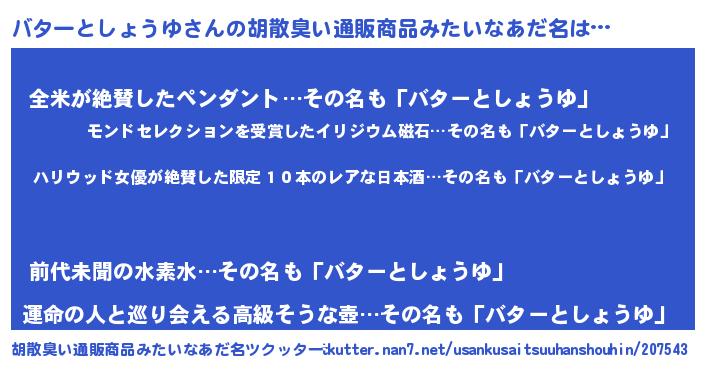 | 意味不明あだ名 | 『住所不定無職バターとしょうゆ(43歳)』 |