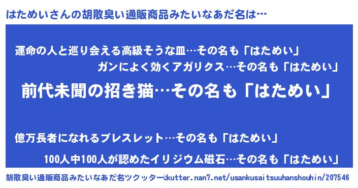 | ヘコむあだ名 | 『はためい(笑)』『酢こんぶ』 |