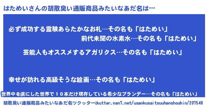 | 恥ずかしいあだ名 | 『ハタメイデラックス』『はたちん』 |