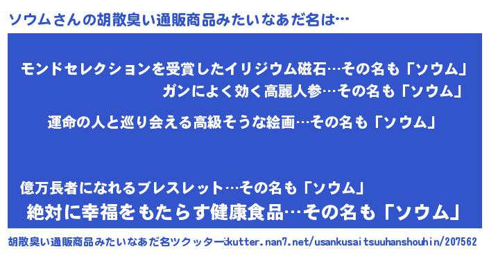 | 意味不明あだ名 | 『ソウムフォーエバー』『永久保存ソウム』 |