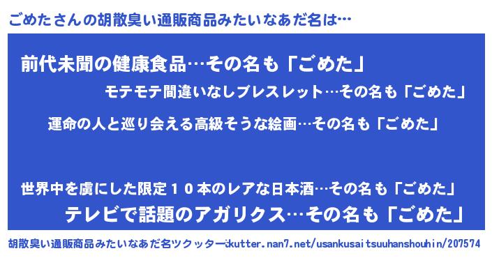 | 意味不明あだ名 | 『ニラ科ごめた属』『ごめたフォーエバー』 |