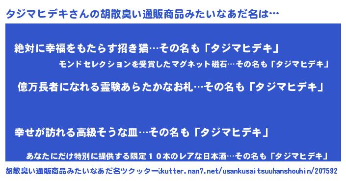 | ヒーロー風カッコイイあだ名 | 『スーパータジマヒデキ』『仮面タジダー』 |