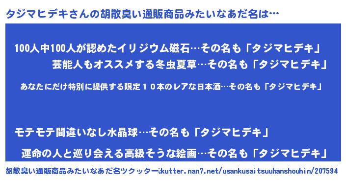 | 伝説のあだ名 | 『救世主となる占い師タジマヒデキ』 |