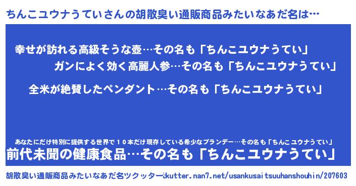 | 欧米人風あだ名 | 『トリンドルちんこユウナうてい』 |