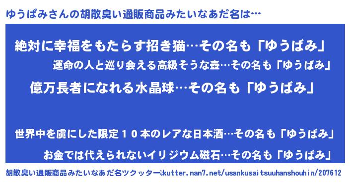 | 意味不明あだ名 | 『ペロリンゆうばみ』『永久保存ゆうばみ』 |