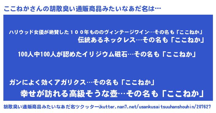 | 肩書あだ名 | 『ここねか少将』『ここねか教授』 |