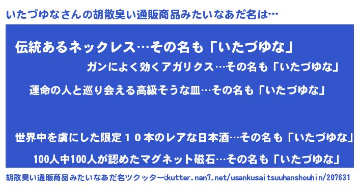 | 男性向けラノベタイトル風あだ名 | 『うちのいたづゆなが世界を掌握している!』 |