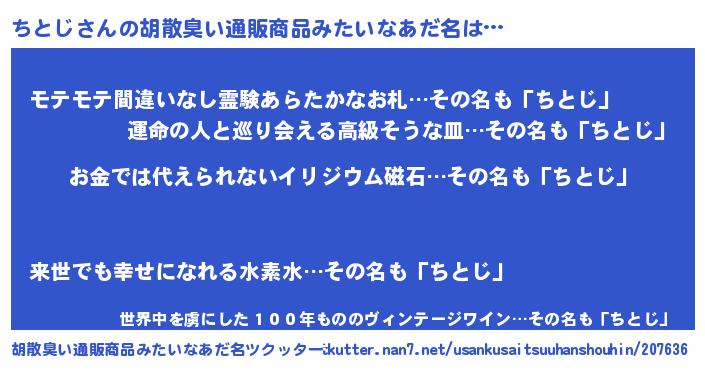 | ヘコむあだ名 | 『ちとふぇ~』『豆乳』『ちとを』 |