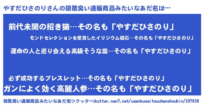 | 欧米人風あだ名 | 『やすだひさのりクリステル』 |
