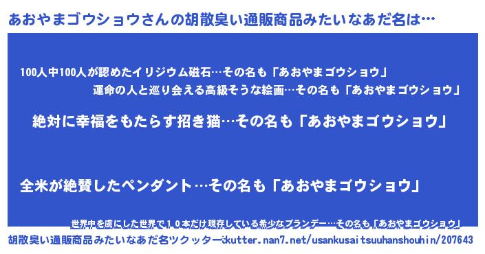 | 意味不明あだ名 | 『永久保存あおやまゴウショウ』 |