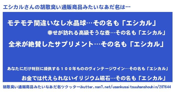 | 意味不明あだ名 | 『とにかく怪しいエシカル』 |
