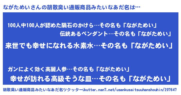 | 意味不明あだ名 | 『永久保存ながためい』『自称ながためい』 |