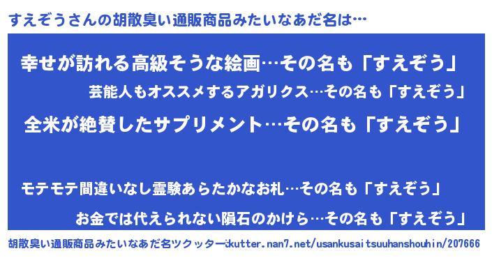 | 男性向けラノベタイトル風あだ名 | 『すえぞうの嫁は女の子じゃないと思った?』 |