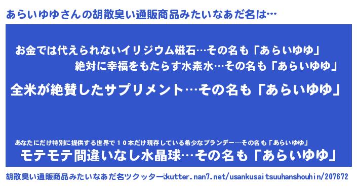 | 意味不明あだ名 | 『とにかく怪しいあらいゆゆ』 |