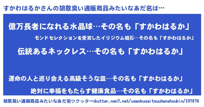 | 意味不明あだ名 | 『とにかく怪しいすかわはるか』 |