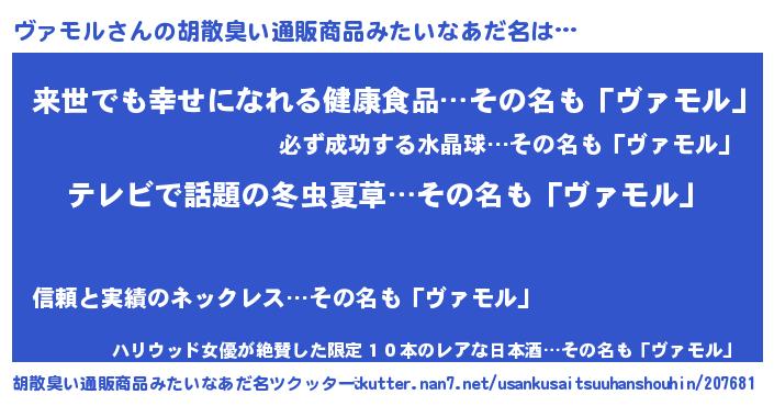 | 意味不明あだ名 | 『自称ヴァモル』『永久保存ヴァモル』 |
