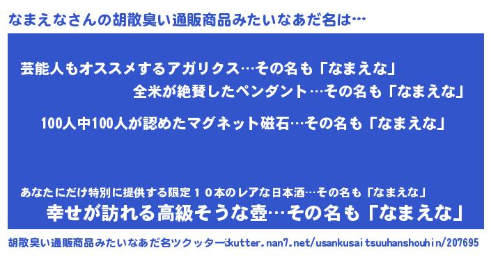 | 欧米人風あだ名 | 『ダニエルなまえな』 |