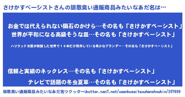 | 意味不明あだ名 | 『住所不定無職さけかすベーシスト(89歳)』 |
