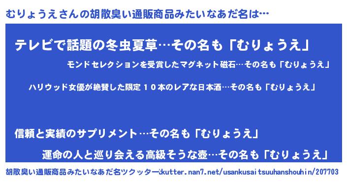 | 恥ずかしいあだ名 | 『ムリョウエデラックス』『むりっちょ』 |