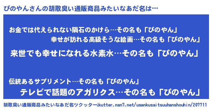 | 意味不明あだ名 | 『永久保存ぴのやん』『自称ぴのやん』 |