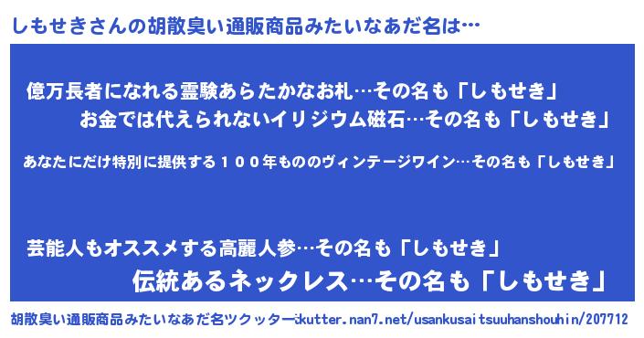 | ヘコむあだ名 | 『しもふぇ~』『しもぷりん』『豆乳』 |