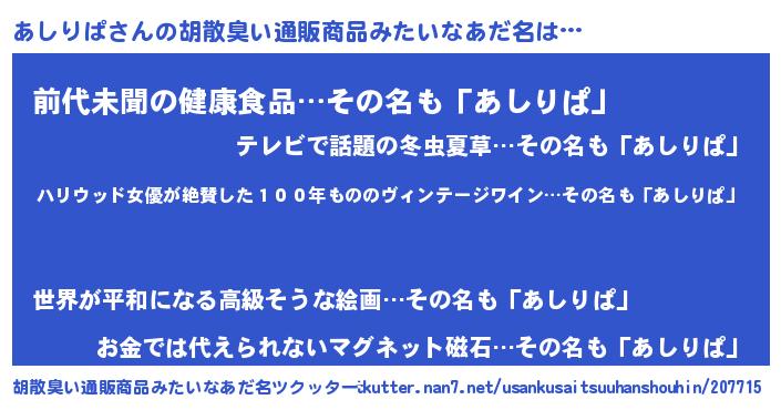 | 料理風あだ名 | 『あしりぱのカルパッチョ風』 |