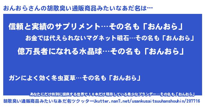 | ヘコむあだ名 | 『おんにゅー』『おん太郎』 |