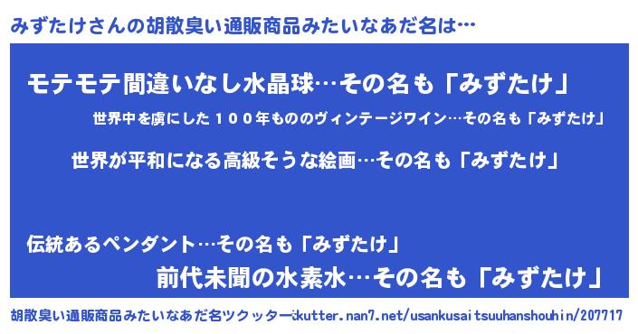 | 欧米人風あだ名 | 『みずたけクリステル』 |