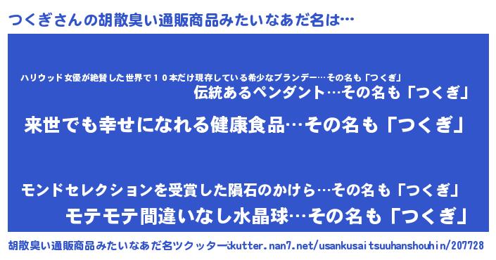 | ヘコむあだ名 | 『つくぎ(笑)』『つくにー』『つくし』 |