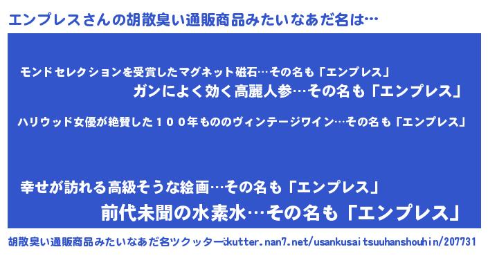 | 意味不明あだ名 | 『住所不定無職エンプレス(5歳)』 |