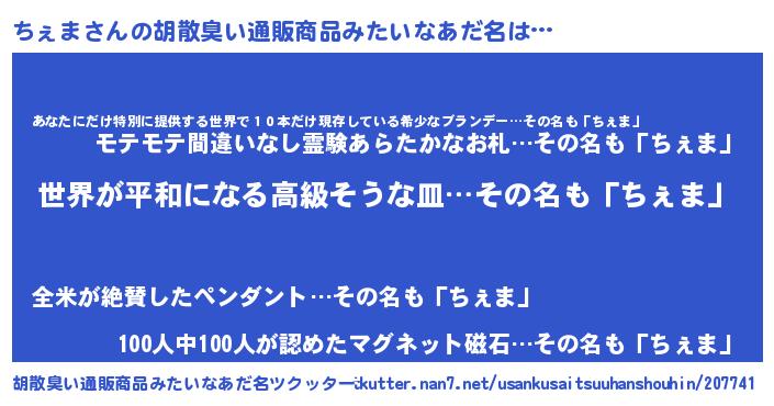 | 意味不明あだ名 | 『ちぇまフォーエバー』『ペロリンちぇま』 |