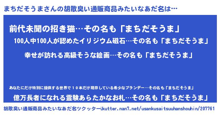 | 男性向けラノベタイトル風あだ名 | 『緋弾のマチダソウマ』 |
