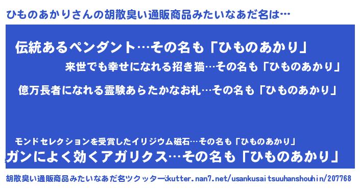 | ヒーロー風カッコイイあだ名 | 『スーパーヒモノアカリ』『暗黒騎士ヒモ』 |