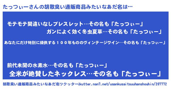 | 意味不明あだ名 | 『住所不定無職たっつぃー(2歳)』 |