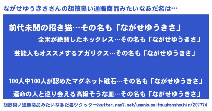 | 肩書あだ名 | 『ながせゆうきさ閣下』 |