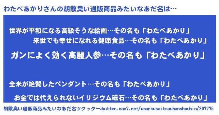 | 恥ずかしいあだ名 | 『ワタベアカリデラックス』『わたっちょ』 |