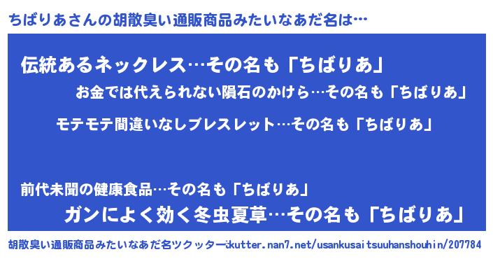 | ファンタジー風あだ名 | 『チバフェル』『ユリチバヴァット』 |