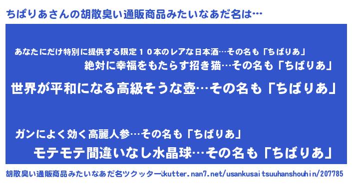 | 恥ずかしいあだ名 | 『ちばっちょ』『プリティーちばりあ』 |