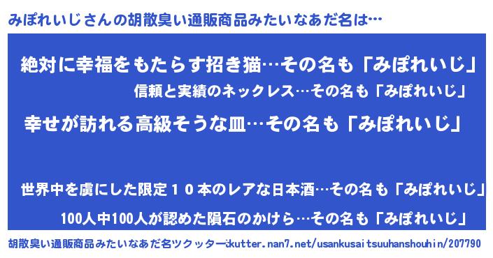 | 男性向けラノベタイトル風あだ名 | 『緋弾のミポレイジ』 |