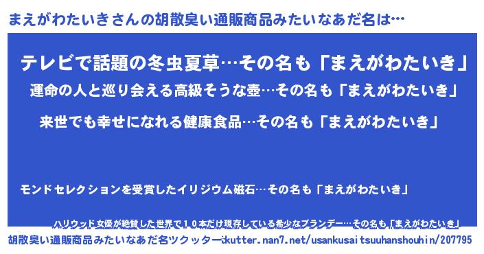 | 意味不明あだ名 | 『永久保存まえがわたいき』 |
