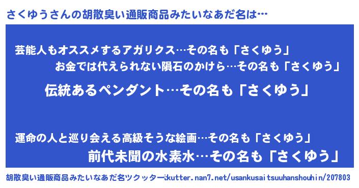 さくゆうさんの胡散臭い通販商品みたいなあだ名をツクッター!