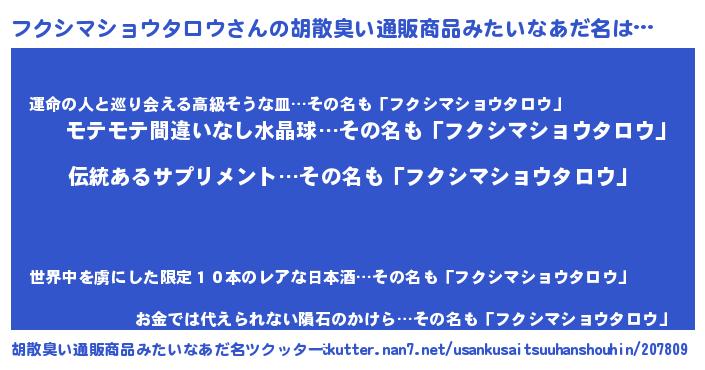 | 欧米人風あだ名 | 『ウサインフクシマショウタロウ』 |